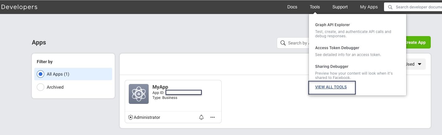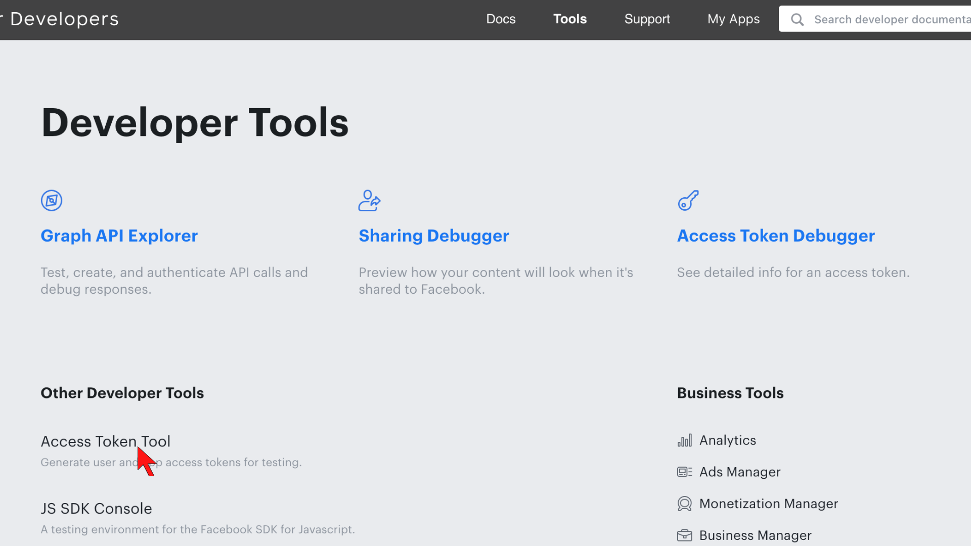 - Then, click on the Access Token Tool as shown: