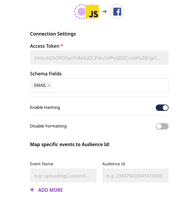 Facebook Custom Audience SetupCustom Audience Connection Settings